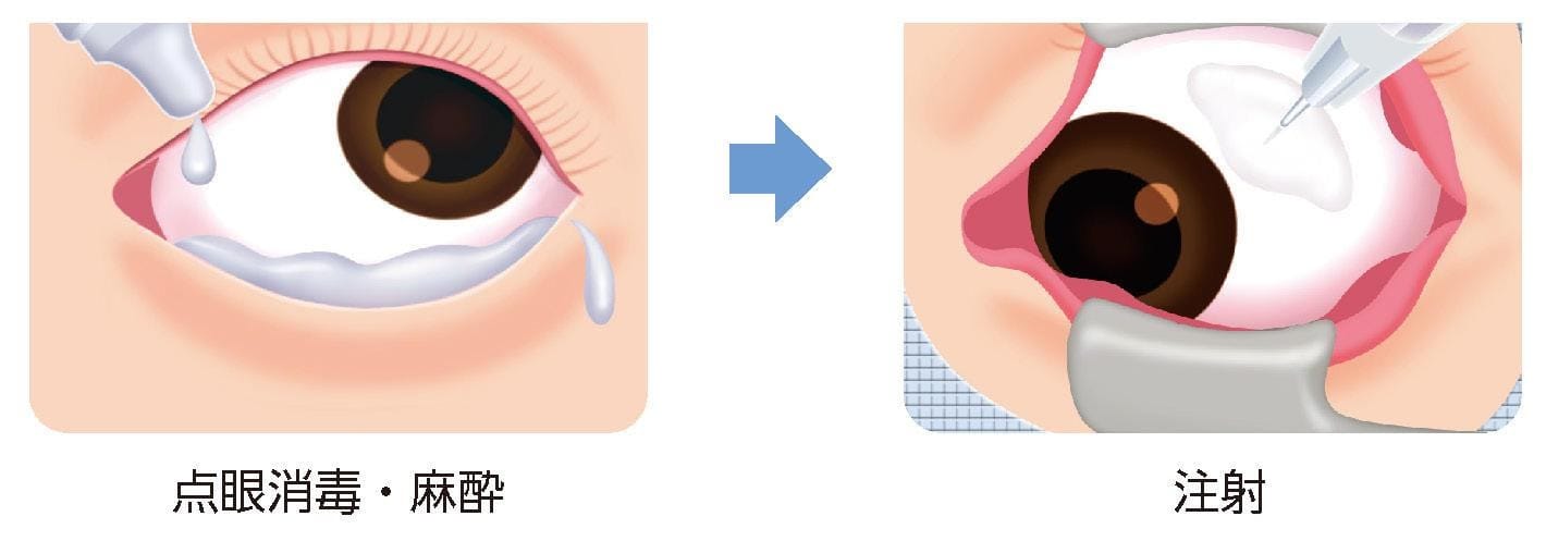 眼の奥の状態が安定するまで1ヶ月に1回、連続して注射を行います。
