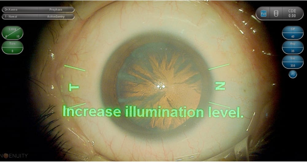 今までは術者は別のモニター画面で確認し、目分量による切開やレンズ固定を行っていました。しかし、VERIONは術中に正確な切開創や固定位置をデジタルガイドで顕微鏡に同時投影しますので、より正確に手術をすることが可能になりました。