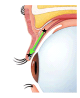 - ・瞼板通糸法では右の図のように、瞼の裏側から瞼板まで糸を通します